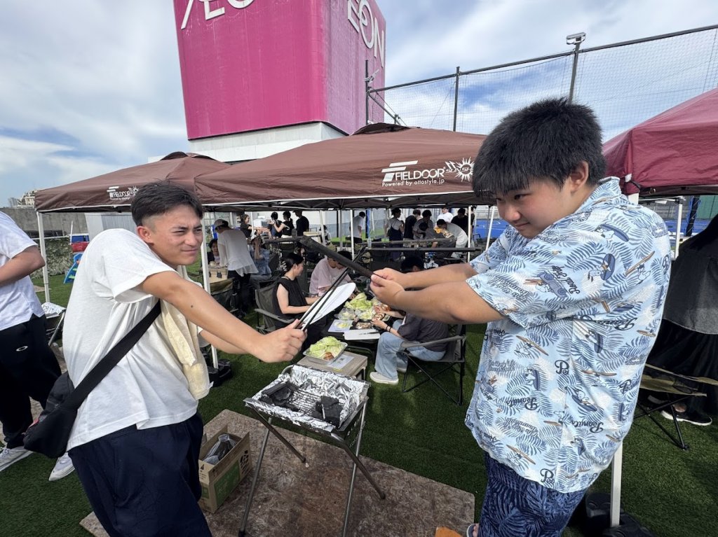今回は、屋外フットサルコートに隣接するBBQスペースでの開催となり、